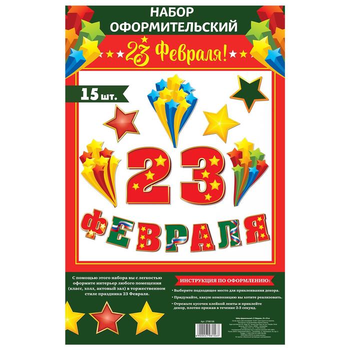 С помощью этого набора вы с легкостью оформите интерьер любого помещения (класс, холл, актовый зал) в торжественном стиле праздника 23 февраля.