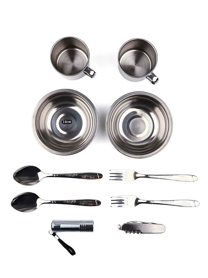 Набор для пикника с сумкой — идеальное решение для комфортного отдыха на природе. В комплект входят 10 предметов: две тарелки, две кружки, две ложки, две вилки, фонарик и мультитул.