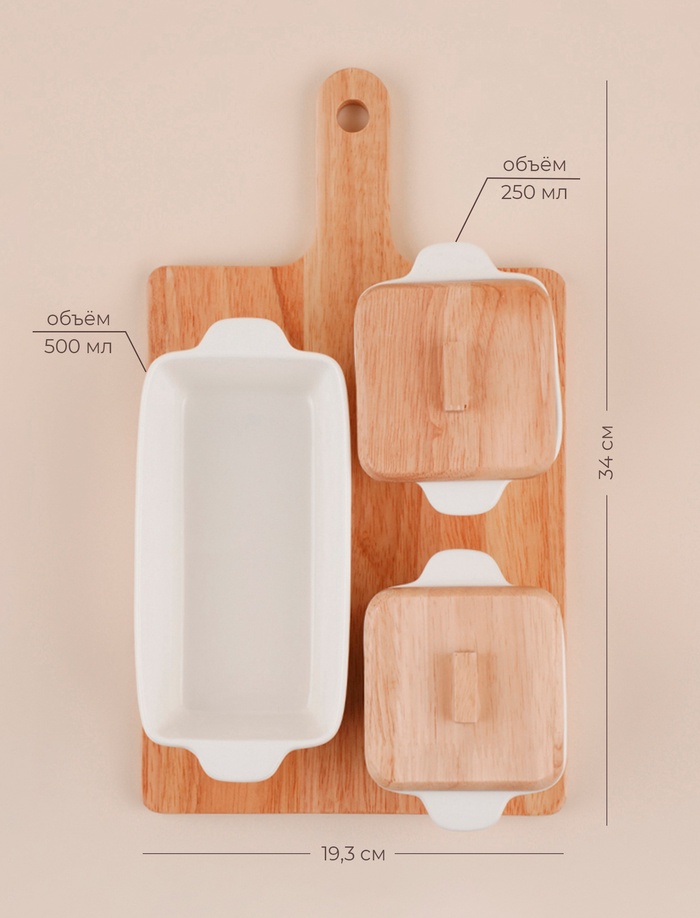Элегантный набор для подачи блюд «Тренто» от SL Home представляет собой гармоничное сочетание стиля и функциональности. Включая три ёмкости из прочного белого фарфора объемом 500 мл и 250 мл, а также деревянную подставку, этот комплект станет идеальным дополнением к вашему столу, придавая ему утончённость и современный вид.