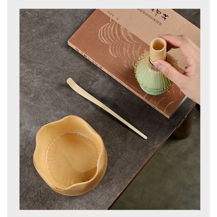 Набор для приготовления Маття чая, 4 предмета: венчик Часен, подставка, ложка Тясаку, чаша Тяван, керамика, бамбук, бежевый