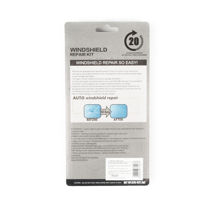 ПРОСТОТА В ЭКСПЛУАТАЦИИ - Комплект для ремонта лобового стекла прост в использовании: сначала очистите и высушите поверхность лобового стекла, выдавите гель в трещины, затем нанести пленку, дать высохнуть и затвердеть под ультрафиолетом 5-10 мин. Остатки геля соскрести шпателем.