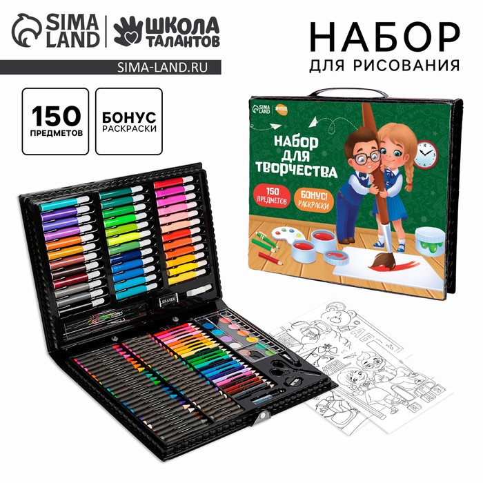Такой набор станет настоящим подарком для художника. Рисуйте, создавайте шедевры с помощью маркеров, восковых мелков, красок и многого другого!