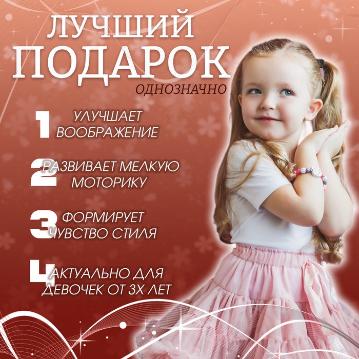 Набор для создания браслетов «Подарок для девочек» в шкатулке – это идеальный выбор для маленьких модниц, которые хотят создавать стильные украшения своими руками. В набор входят 26 разнообразных предметов, таких как бусины, нитки, подвески и аксессуары, которые позволяют создать множество уникальных браслетов.