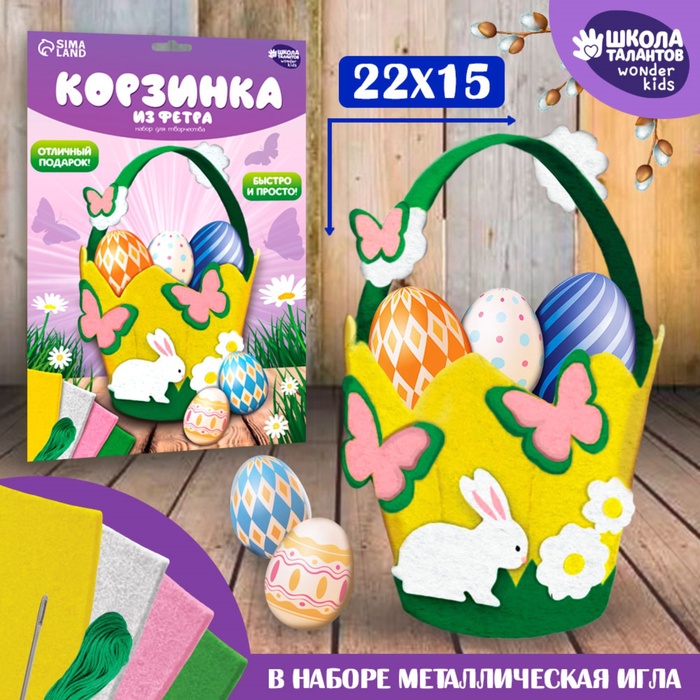 Детям нравится создавать поделки из самых невероятных материалов. Оригинальный набор для создания фетровой корзиночки по-настоящему увлечёт ребёнка и станет удачным подарком для талантливого малыша!