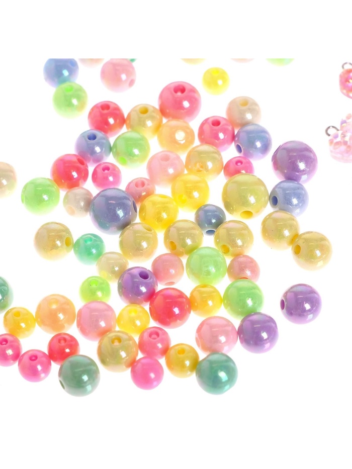 - Возьмите резинку — основу для бус. Нанизывайте на неё бусины среднего размера.