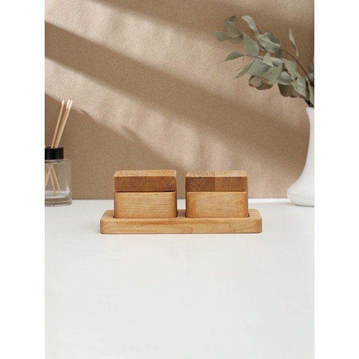 Набор для специй Adelica, 2 банки с крышкой на деревянной подставке, пропитан маслом, 20×10×1,8 см, берёза