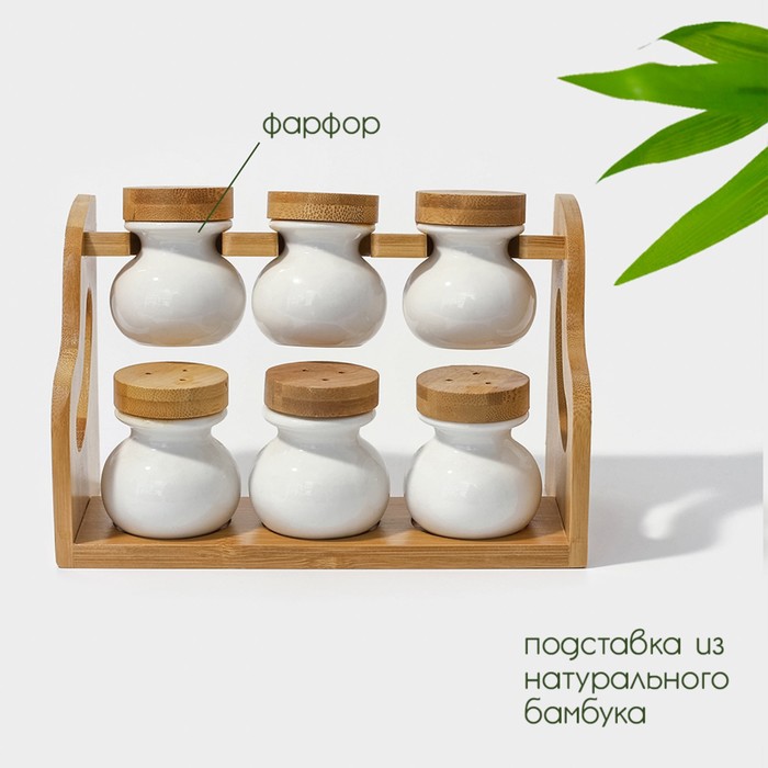 Набор баночек BellaTenero отлично подойдёт для хранения любых сухих специй и приправ: вы сможете пересыпать в баночки соль, перец, сухой чеснок или любые травы и многое другое. У каждой ёмкости есть своя плотная крышка, а весь набор дополнен деревянной подставкой для удобства. Ёмкости для хранения могут стать элегантным предметом сервировки стола. Практичный набор впишется в любой интерьер.