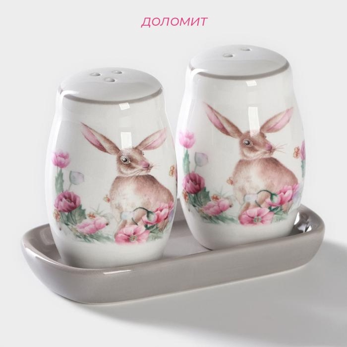 Набор для специй Доляна «Зайка» изготовлен из качественного доломита. Благодаря нежному дизайну изделие легко украсит вашу кухню, а также прекрасно подойдёт в качестве подарка.