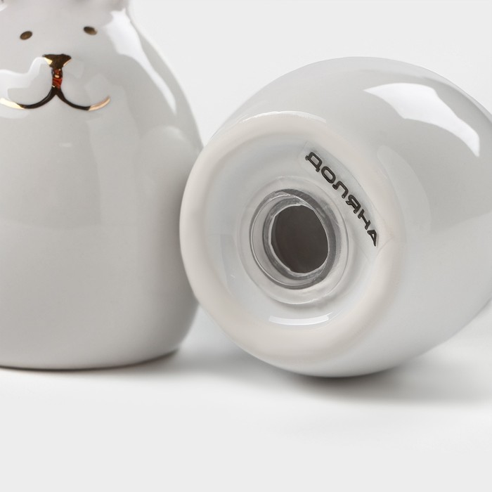 Набор для специй Доляна «Зайка в золотом» изготовлен из качественного доломита. Благодаря оригинальному дизайну изделие легко украсит вашу кухню, а также прекрасно подойдёт в качестве подарка.