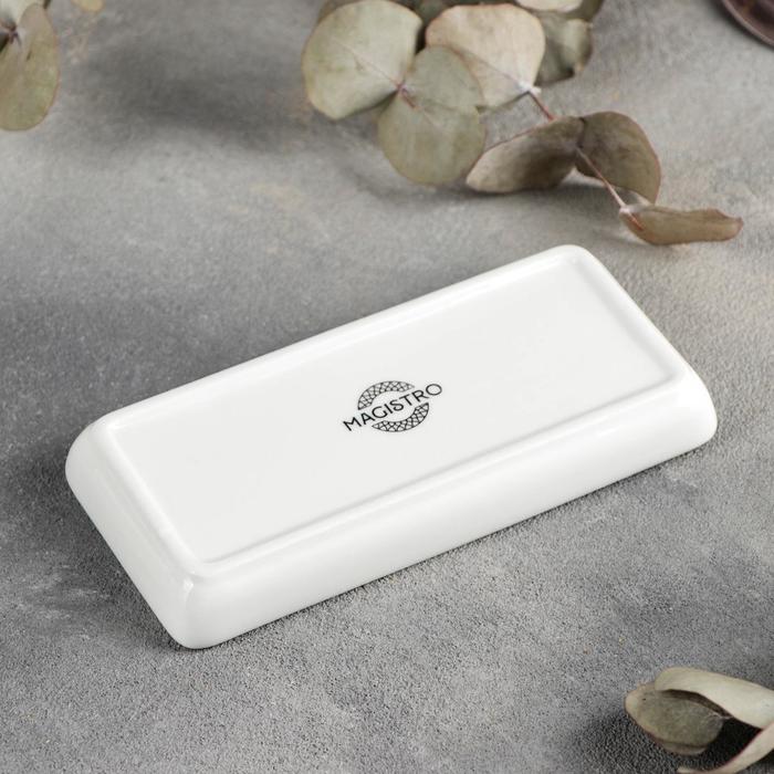 Набор для специй Magistro «Бланш», солонка 65 мл, перечница 60 мл, ёмкость для зубочисток, на подставке, фарфор, белый