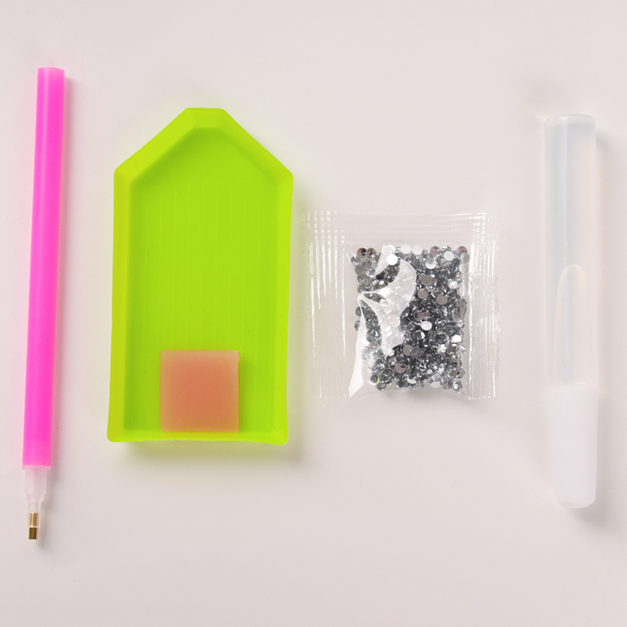 - Насыпь стразы в ёмкость для страз, бери стилусом по одной штучке.