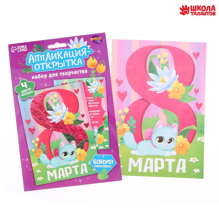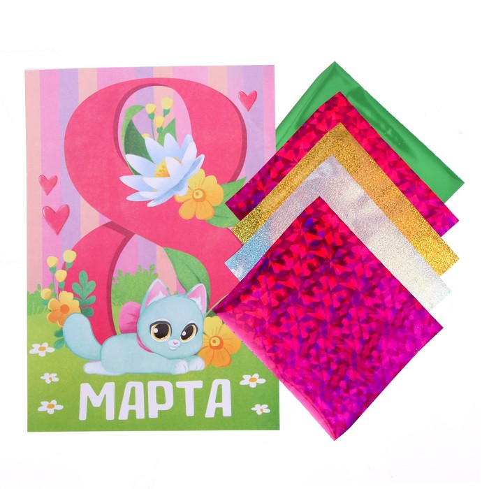 - Затем выберите любой цвет фольги и приложите к выбранному фрагменту. Картинка засияет яркими красками! Полученная открытка станет отличным подарком к празднику.