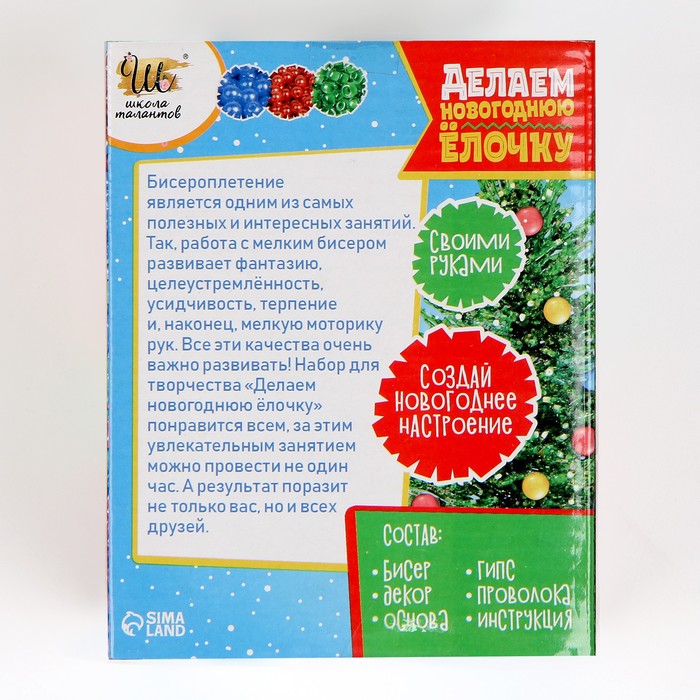 Набор для творчества «Делаем новогоднюю ёлочку из бисера» включает в себя: