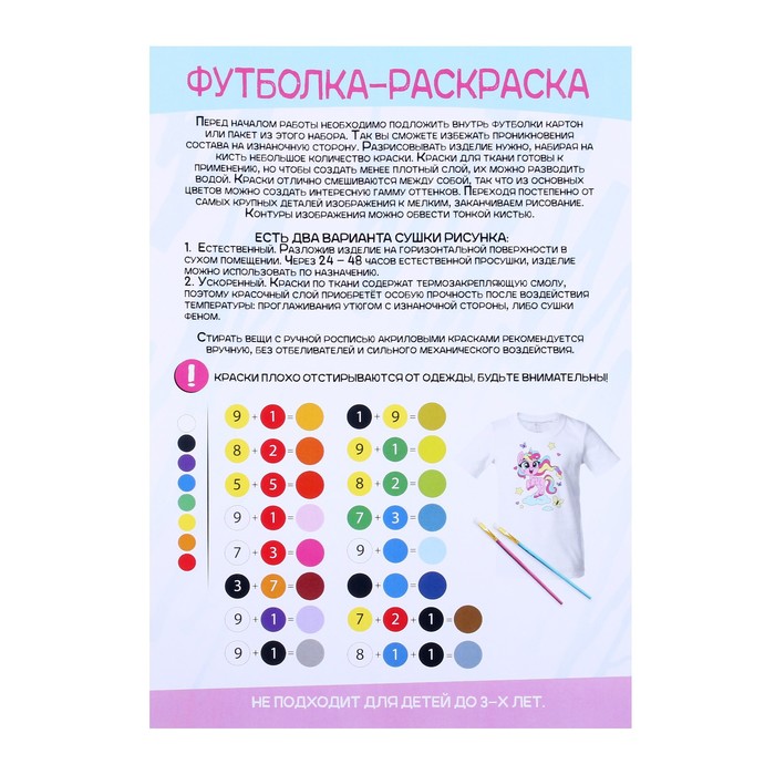 С набором для творчества «Футболка-раскраска» вы сможете создать уникальный предмет одежды и весело провести время! Смешивайте цвета, меняйте насыщенность красок, добавляя воду, и не бойтесь экспериментировать!