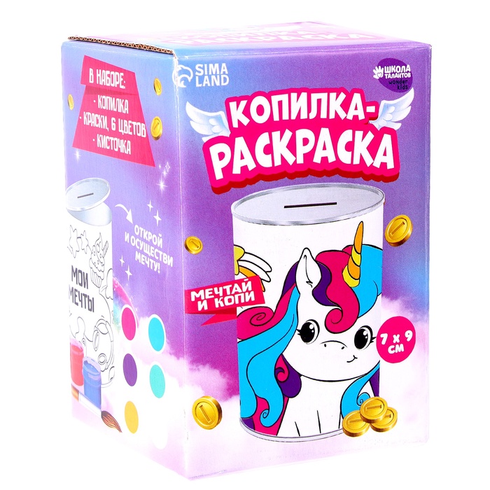 С помощью этого набора ребёнок самостоятельно раскрасить копилку и приблизить исполнение заветного желания, начав откладывать собственные сбережения.