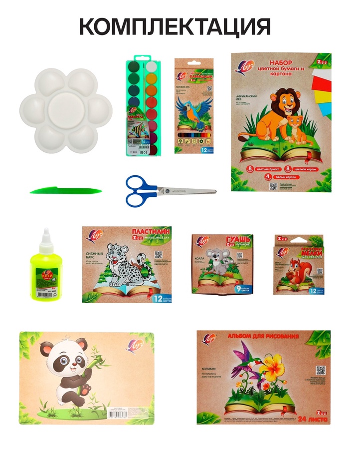 - Набор цветной бумаги и картона «Zoo» А4, 20 листов.