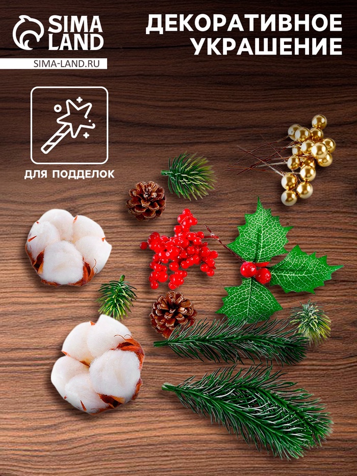 - В комплект входят натуральные шишки и соцветия хлопка.