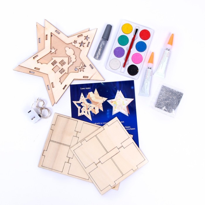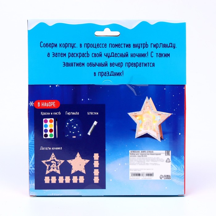 С набором для творчества «Новогодний ночник» у вас получится создать стильный светильник. Для этого в наборе вы найдёте всё необходимое.