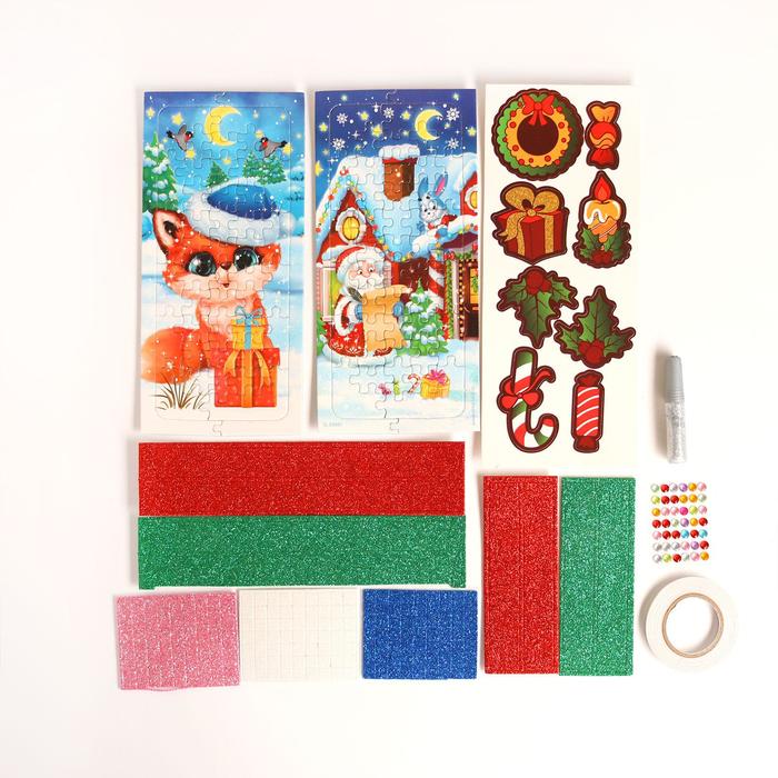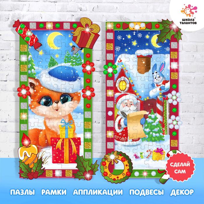 Серия наборов для творчества «Пазл-аппликация» представлен шестью наборами, в каждом из которых есть по 2 больших пазла с разными картинками.