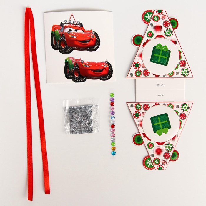Примеры оформления вы найдёте на коробочке. К готовому новогоднему украшению присоедините яркую ленту и повесьте изделие на ёлочку.