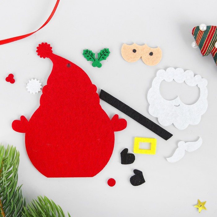 В наборе: элементы из фетра, лента для подвеса, изображение готовой поделки.