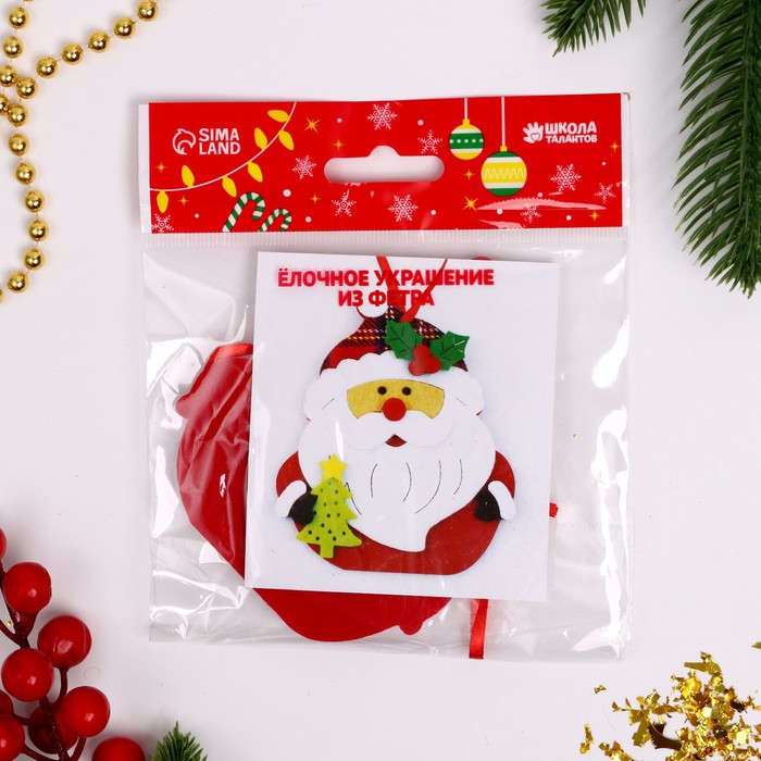 Набор для творчества - создай ёлочное украшение из фетра «Дед мороз с ёлочкой»
