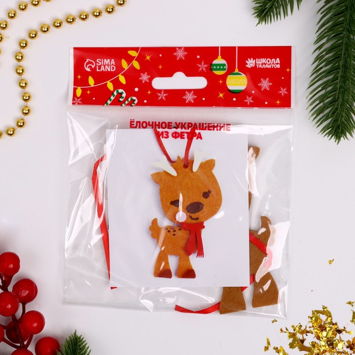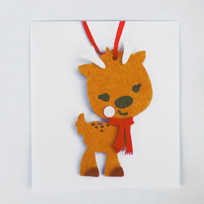В наборе: элементы из фетра, лента для подвеса, изображение готовой поделки.