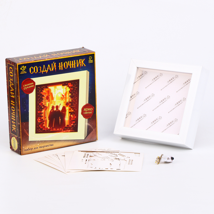 С таким набором для творчества ребёнок своими руками сделает уникальный ночник, который будет его радовать перед сном. Сборка ночника с картинкой внутри поможет развить творческие способности ребёнка. А ещё подарит радость и хорошее настроение всей семье. Создайте волшебную атмосферу!