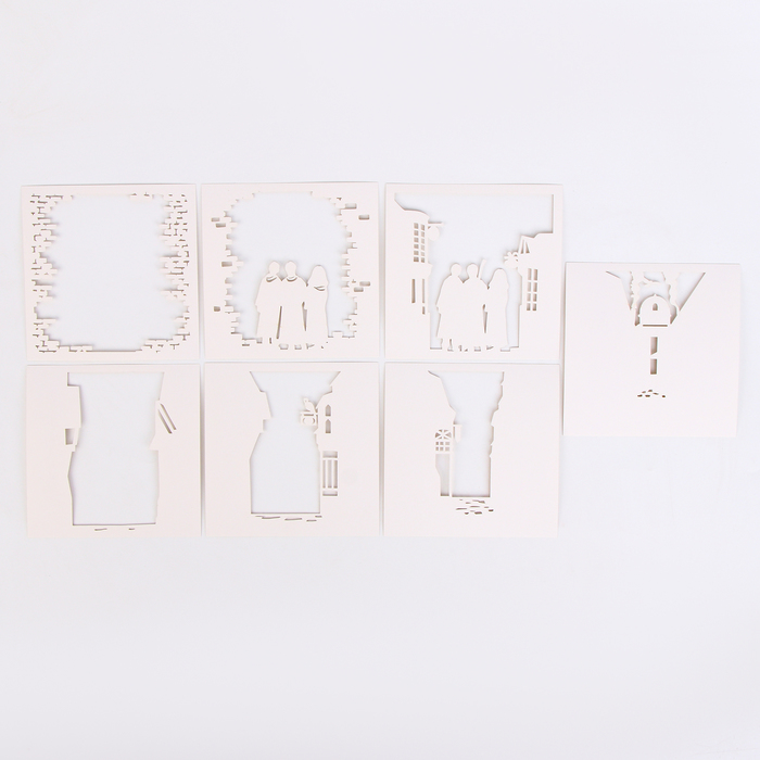 - Достань из рамки пенокартонные вставки. Попроси взрослых разрезать их по пунктирным линиям.