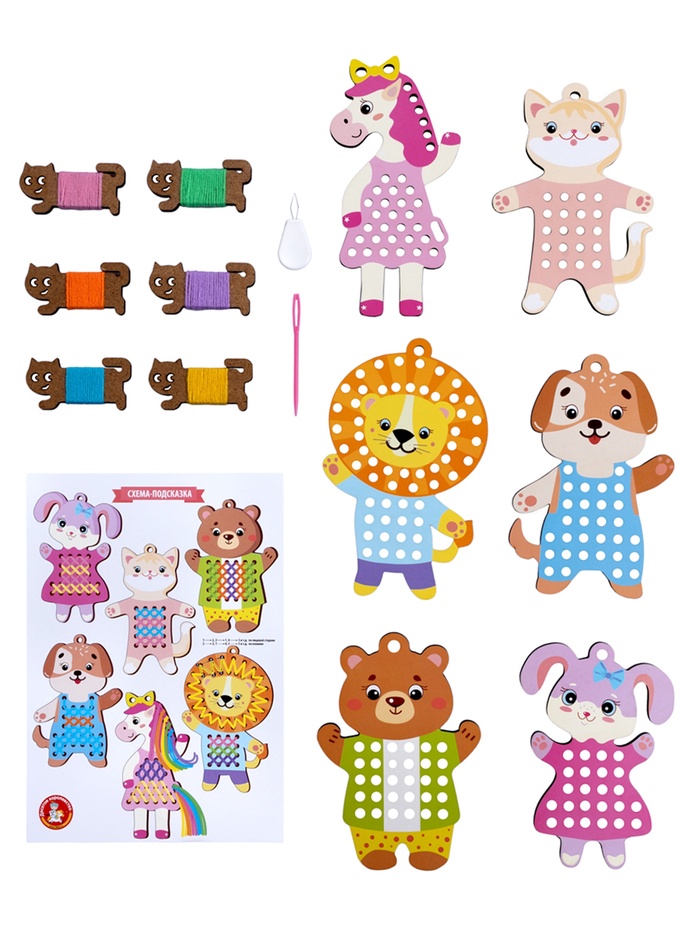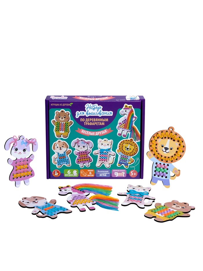 Набор для творчества. Вышивка по деревянным трафаретам "Весёлые друзья"