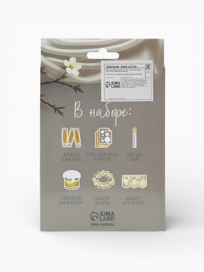 Набор для украшения кулича «Листья»: краска, фольга, свеча, ободок, украшение, перчатки