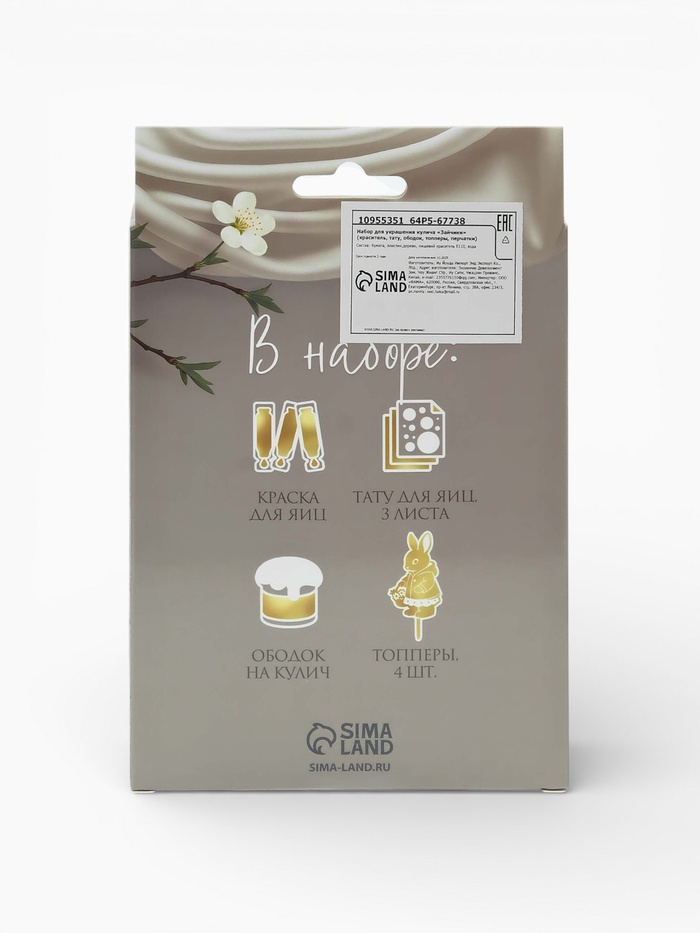 Набор для украшения кулича «Зайчики»: краска, тату, ободок, топперы, перчатки