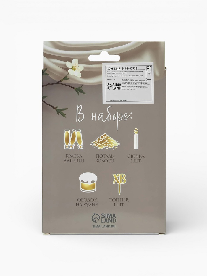 Набор для украшения кулича «Золотой»: краска, фольга, свеча, ободок, топпер, перчатки
