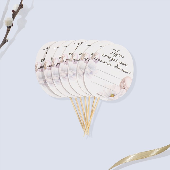 С помощью данного набора вы сможете украсить яйца и куличи к светлому празднику Пасхи. В комплект входит 7 термонаклеек, 7 топперов для кулича и 7 подставок для яиц.