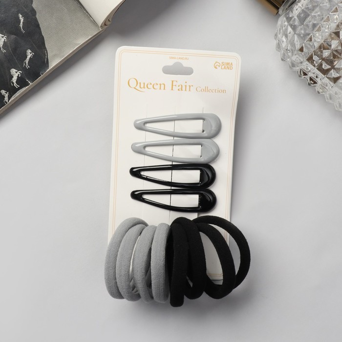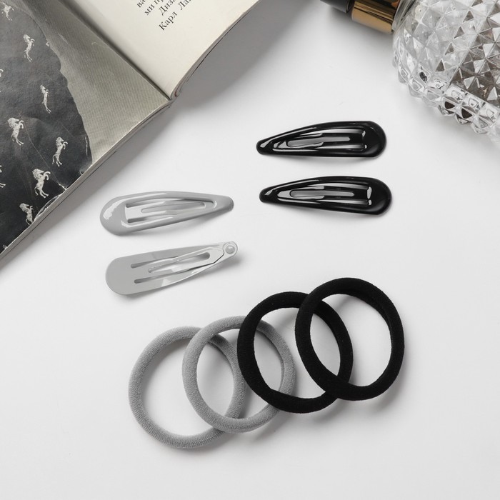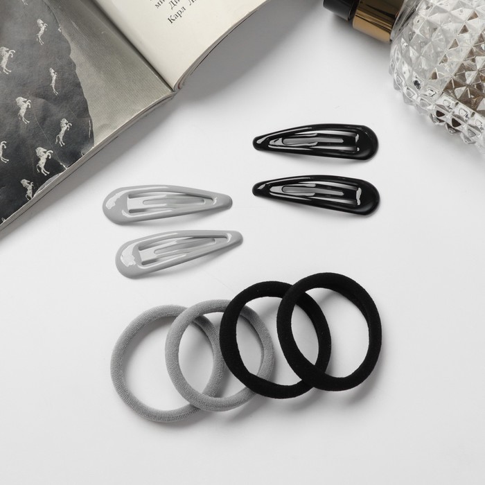 - Содержит 12 элементов: 4 заколки, 8 резинок.