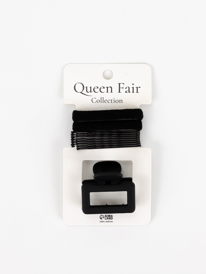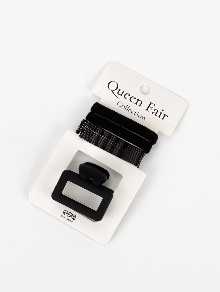Набор для волос QF «Вивьен», 2 резинки 5.5 см, 8 невидимок 5.5 см, краб 4 см, классика, чёрный