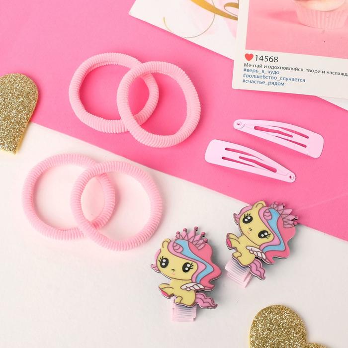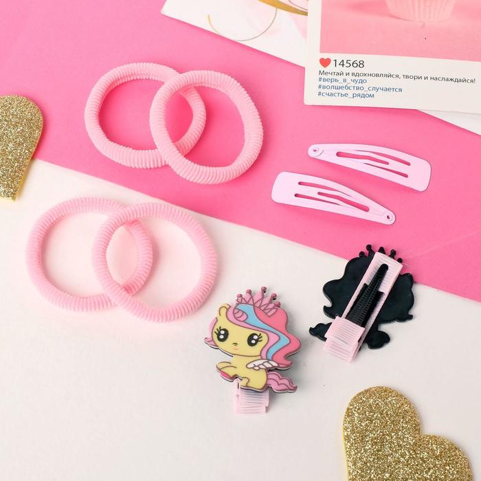 Набор для волос «Веселые малыши», 4 резинки, 2 зажима, 2 невидимки, пони