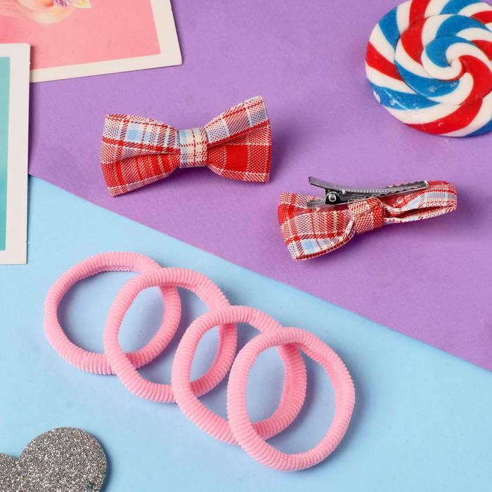 Набор для волос Выбражулька «Аннет», 4 резинки, 2 зажима, строгая клетка, 5.5×3.5 см, красно-розовый