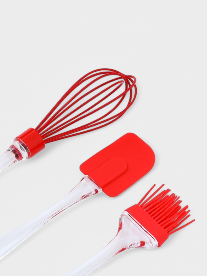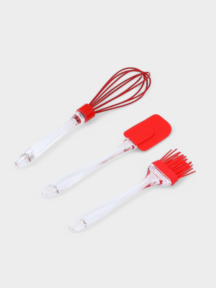 В набор для выпечки входит шпатель, кисточка и венчик. Приборы изготовлены из прочного материала, не выделяют запахов и вредных веществ, безопасны в использовании.