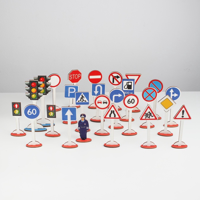 С набором «Дорожные знаки» любая прогулка на улице станет для малыша безопаснее. Благодаря набору ребёнок сможет в игровой форме изучить правила дорожного движения и узнать правила поведения на проезжей части. Проецируя игровые сюжеты в реальность, маленький пешеход защитит себя от опасности на дороге.