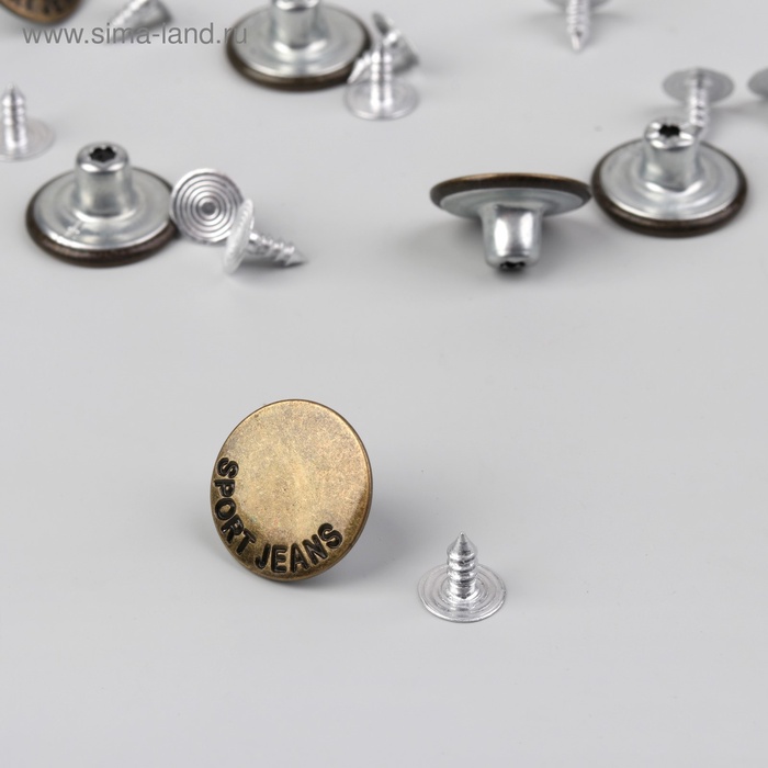 Джинсовые пуговицы состоят из двух частей. Верхняя часть - это шляпка, которая может быть гладкая, с рисунками, стразами, покрыта эмалью и иметь различные цвета под металл: никель, латунь, чёрный никель, серебро, старое серебро и т.д. Установка застёжки джинсовой пуговицы на одежду производится с помощью пресса и специальных насадок.