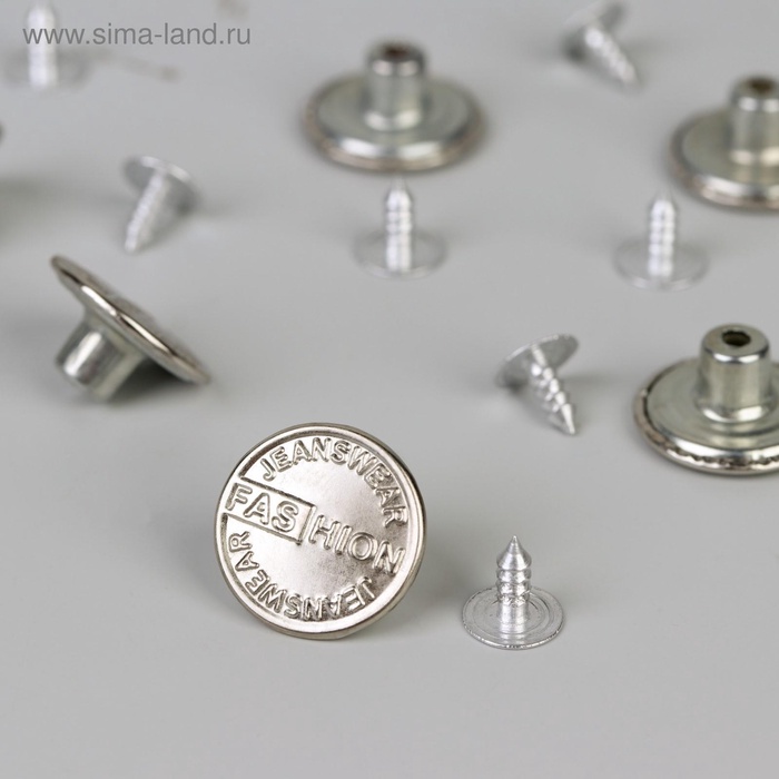 Джинсовые пуговицы используются в изготовлении одежды и других изделий из джинсовой ткани. Для грубой ткани нужна надёжная фурнитура. Во-первых, она должна крепиться прямо в материал — нитки не выдержат нагрузок. Во-вторых, от самой пуговицы требуется повышенная прочность, поэтому она изготавливается из металла.