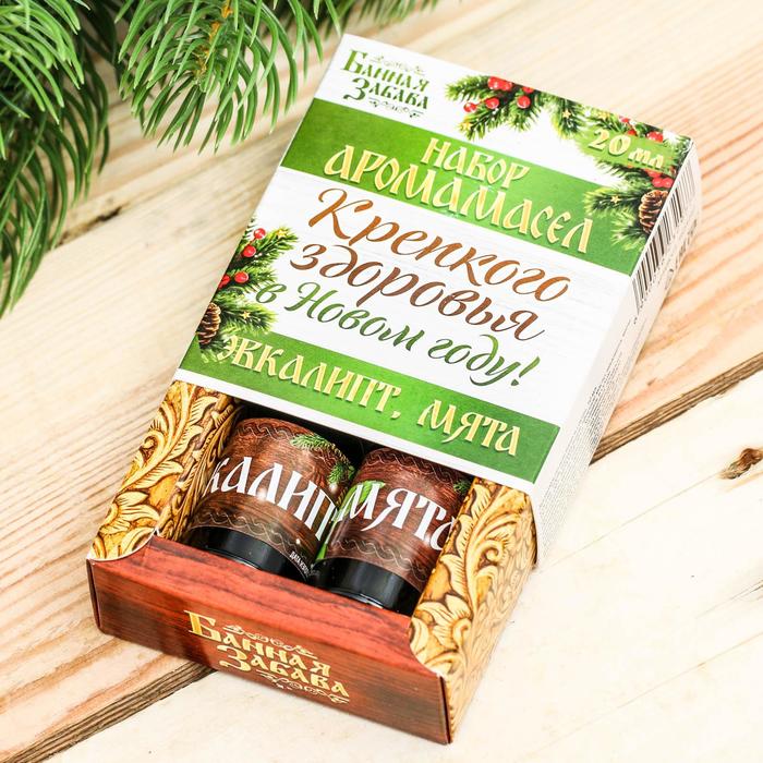 Набор эфирных масел 2 шт по 10 мл "Крепкого здоровья в новом году!" эвкалипт, мята