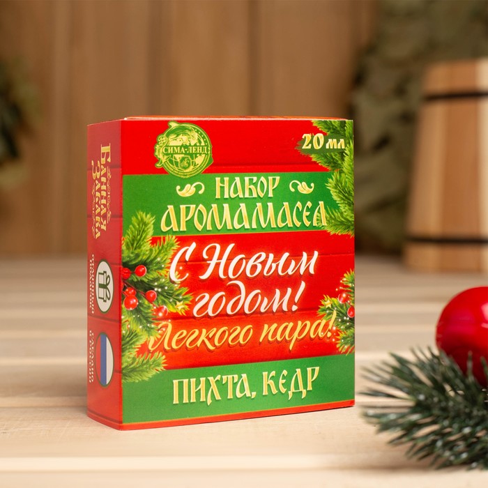 Набор эфирных масел 2 шт по 10 мл "С новым годом! С легким паром!" пихта, кедр