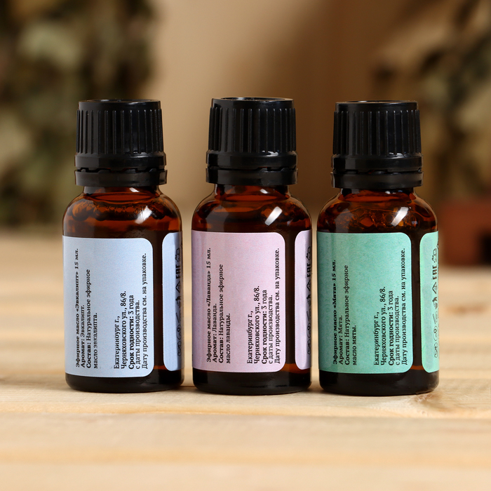 Откройте для себя коллекцию "Ароматы успокоения" – стратегически подобранное трио эфирных масел: лаванда, эвкалипт и мята. Эти природные ароматы, каждый объемом 15 мл, создают гармониечную атмосферу, способную превратить любой уголок вашего дома в оазис спокойствия и свежести.