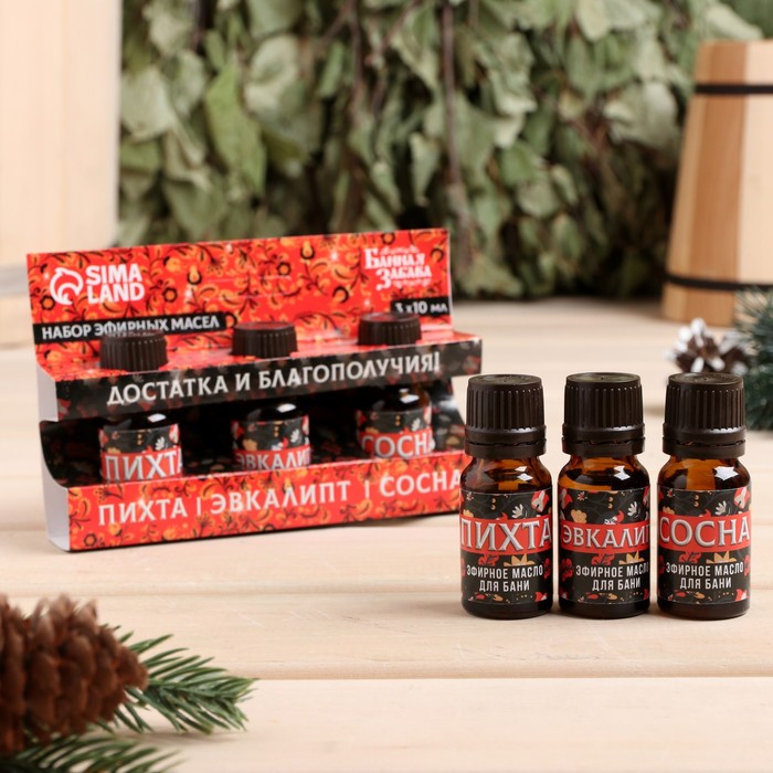 Набор эфирных масел 3 шт по 10 мл "Достатка и благополоучия!", пихта, эвкалипт, сосна