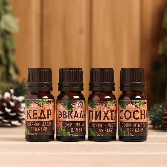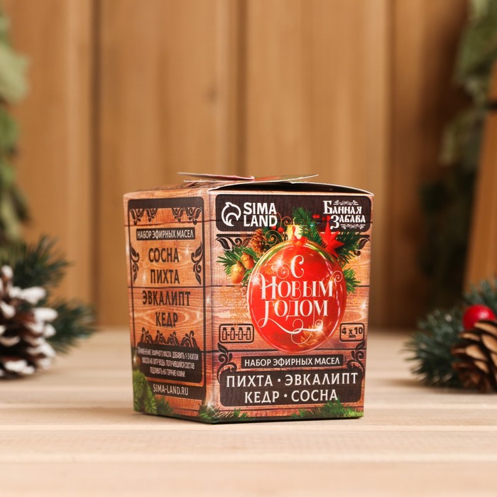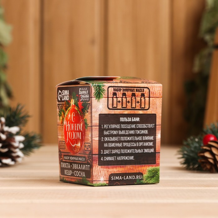 Набор эфирных масел 4 шт по 10 мл"С Новым Годом!", пихта, эвкалипт, кедр, сосна