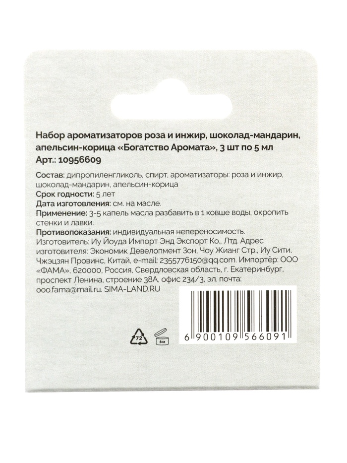 Набор эфирных масел роза-инжир, шоколад-мандарин, апельсин-корица «Богатство Аромата», 3 шт. по 5 мл