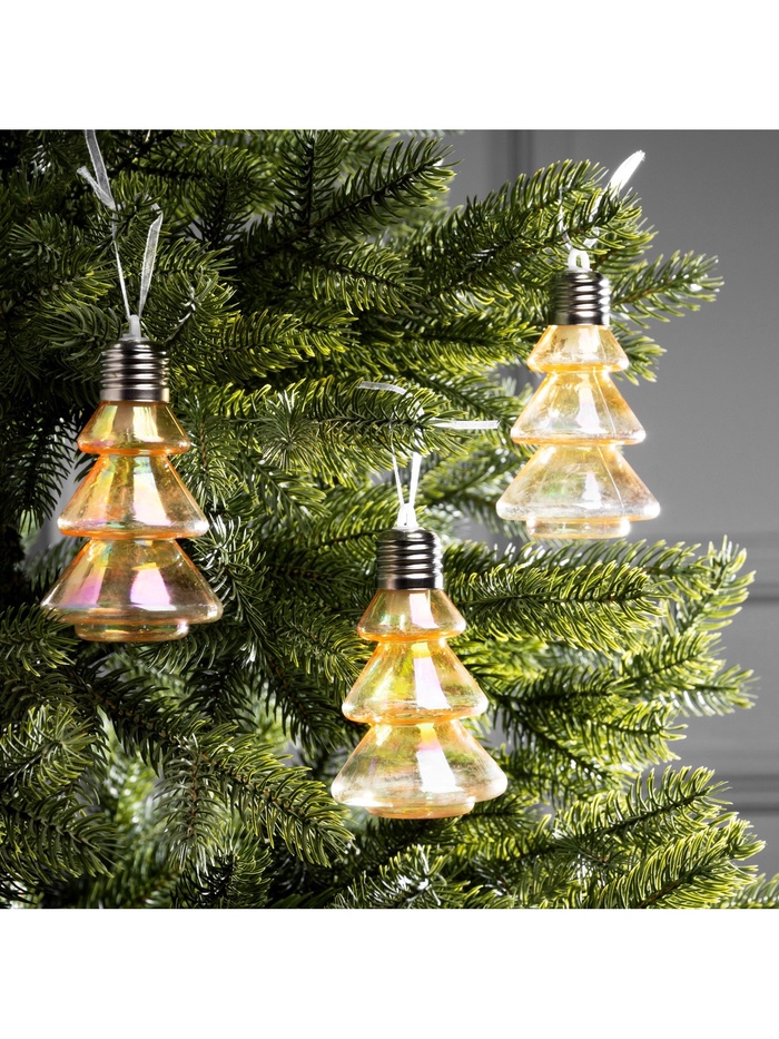 Набор ёлочных шаров «Ёлки-конусы», 3 шт., d=10×6 см, 3 LED, от батареек AG13×9, свечение тёплое белое
