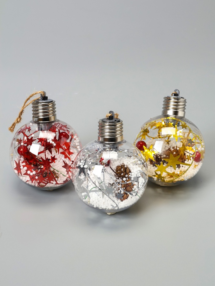 Создайте атмосферу волшебства: Этот набор — ключ к тёплой, душевной новогодней атмосфере. Три светящихся шара с мишурой станут ярким акцентом на вашей ёлке. Это готовое решение для любителей ностальгии и практичный подарок, который точно оценят. Встречайте Новый год в сиянии знакомого с детства уюта!